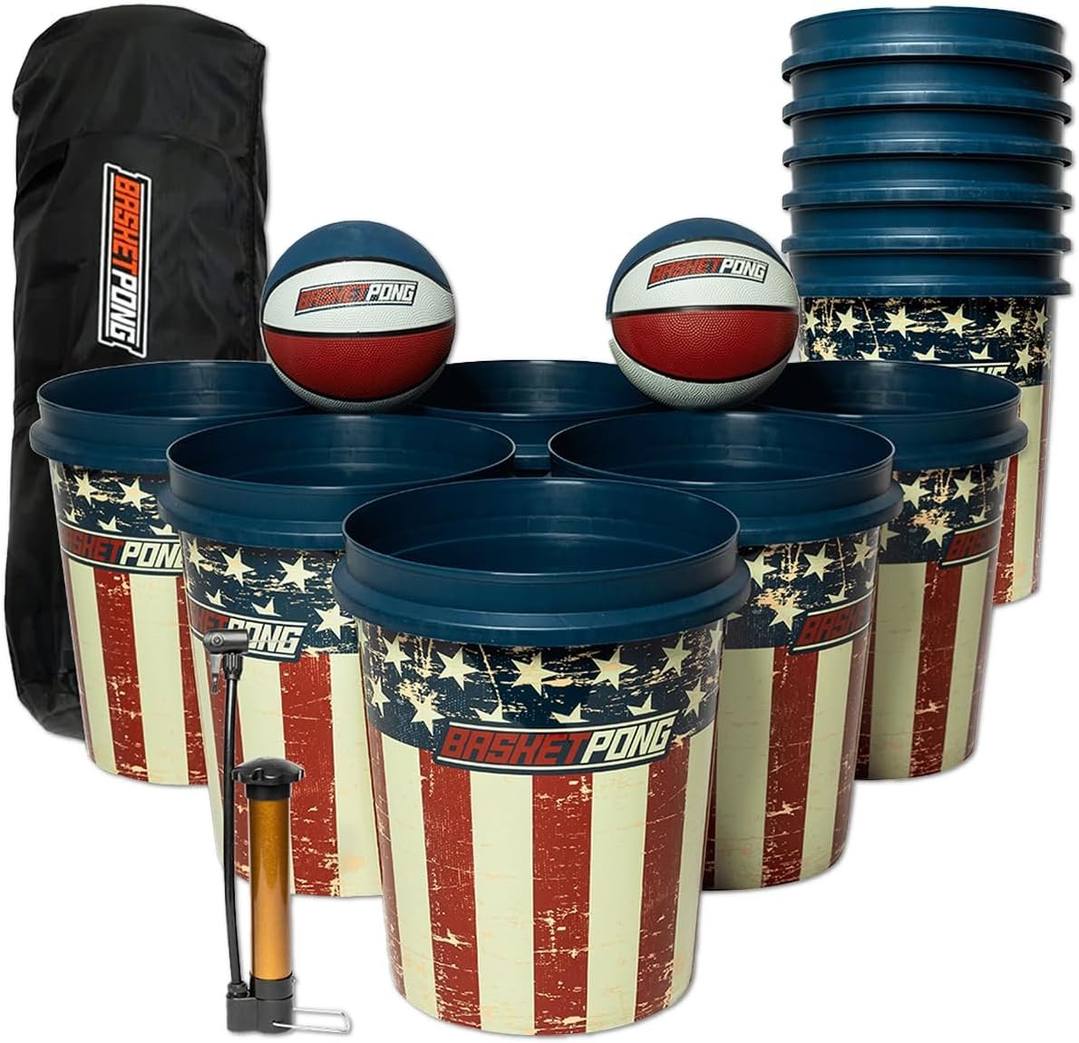 Oversized buckets + basketballs = instant fun. Adults who once loved beer pong can enjoy this kid-friendly twist. In summer, fill buckets with cold water for extra laughs.